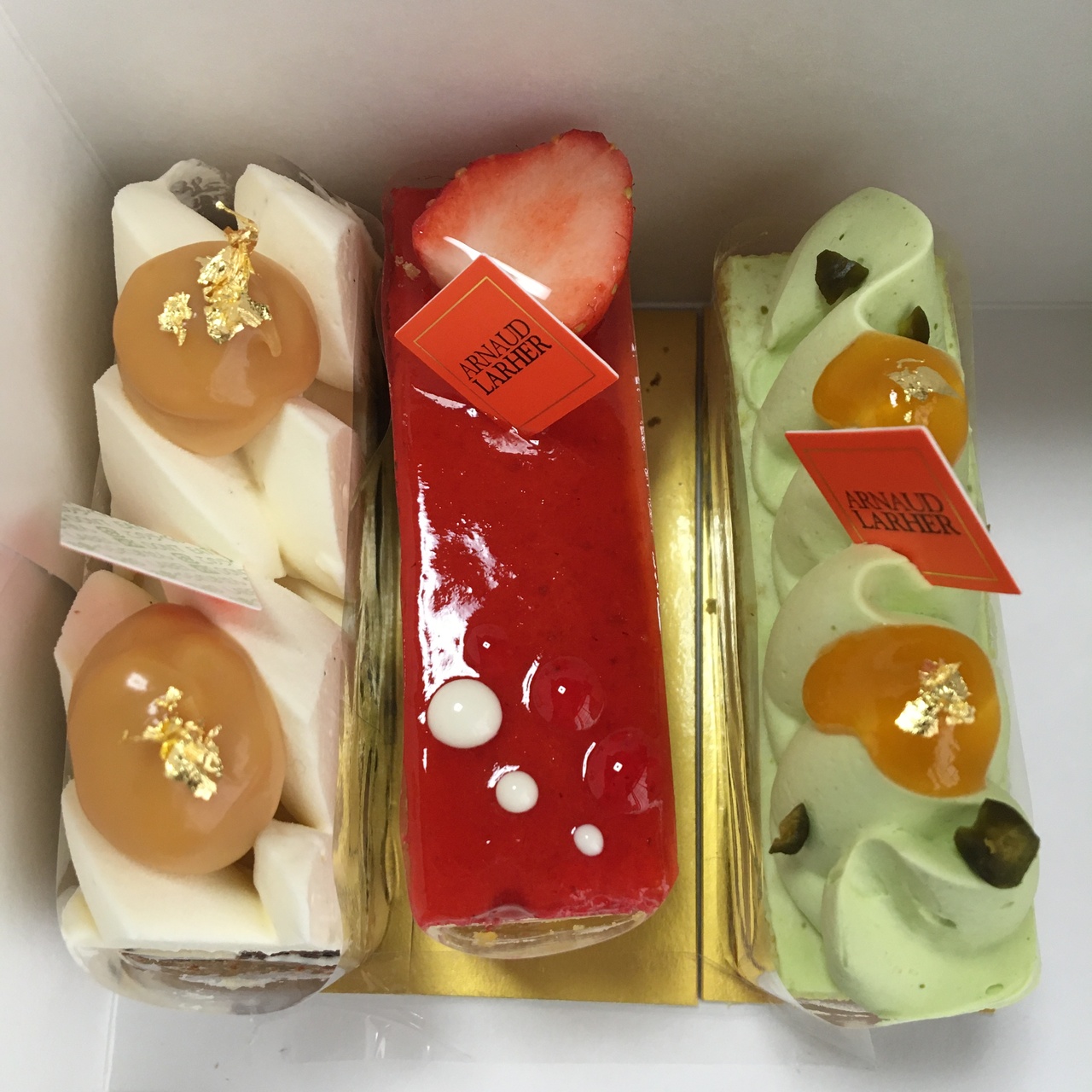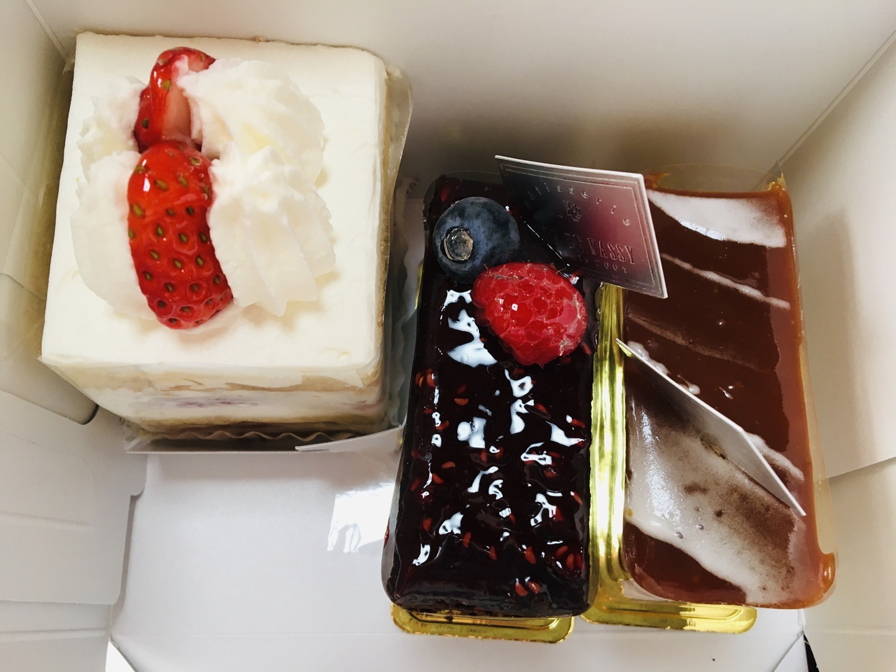 平日の15時頃来店しました。先客が1組いらしゃいました。マドレーヌなどギフト用の焼き菓子も充実しています。奥のショーケースにケーキが並んでいます。チョコレートのビスケット生地がサクサクとしたデジール(税込660円)、ベリーの酸味が効いたフロマージュ ルイーズ(税込660円)、グリーンが鮮やかなル ベルランゴ(税込680円)を購入しました。