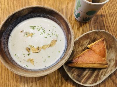 プレーンのスコーン(265円)とゴボウのポタージュ(570円)をイートインでいただきました。スコーンは中がしっとりしてて、初めて食べる食感!甘くて絶妙に美味しいです。あまりに美味しかったので、お土産にもう一つ買いたいと思ったら、帰る時には早くも売り切れてました。朝ごはん用に、全粒粉のカンパーニュを購入しました。- 旅行時期