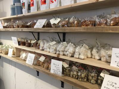 金曜日の午前中に訪問。店内はお客さんがひっきりなしに入ってきて賑やかです。入口入って左側にお土産用の焼き菓子が並んでいました。