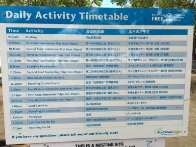 島に到着すると、歌で迎えてくれます。1日のアクティビティーがボードに記入されていて、潜水艦やシュノーケリンクなど、好きなものに参加できます。島では飲み物がフリーなので、ビーチでのんびりするのもいいし、アクティビティに参加するのもいいし、贅沢な時間が過ごせます。- 旅行時期