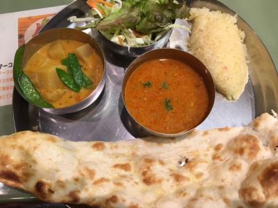 ご飯とナンが両方食べられるのがうれしい。ナンがふっくらしてたらもっと嬉しかったなと。
