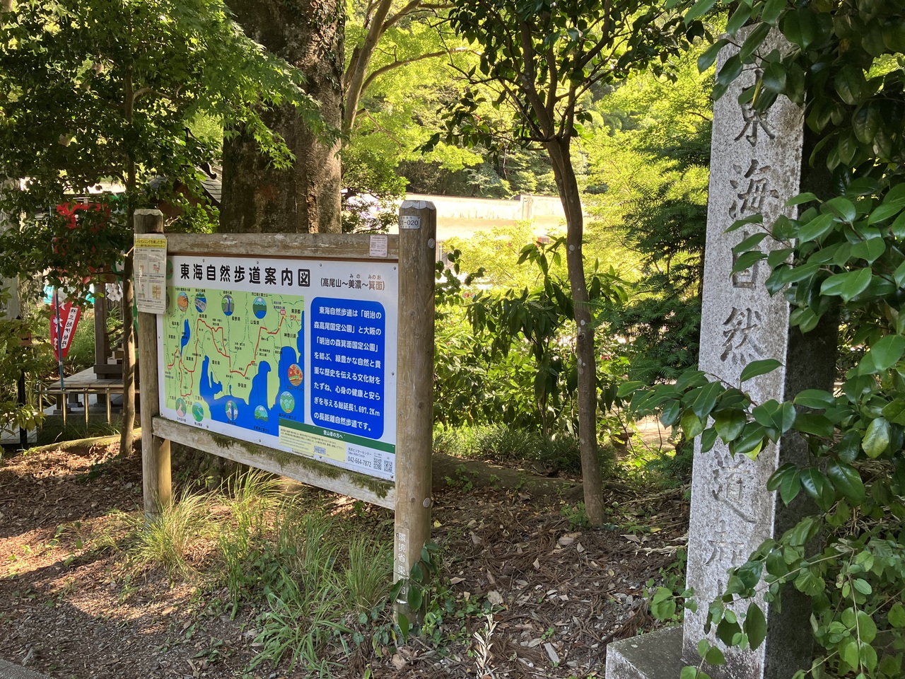 高尾山登山へ行った帰りに金比羅台を通って1号路で下山すると右手に石碑と案内板が見えてきます。東海道自然路は、高尾の「明治の森高尾国定公園」から大阪府箕面市までの11都府県にまたがる自然歩道だそうで、その起点の場所にあたります。