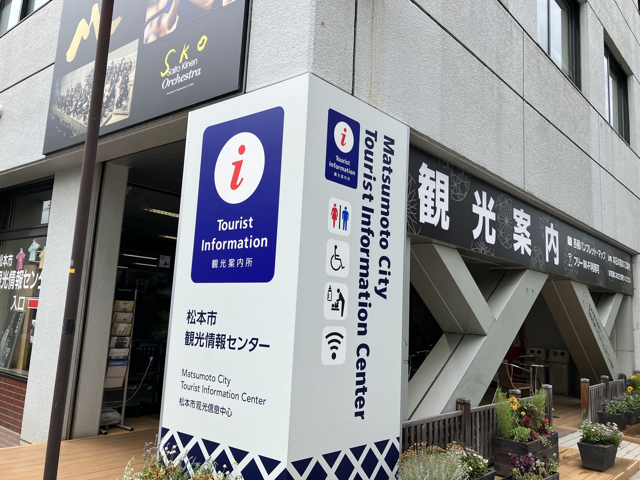 松本城に向かって大名町通りを進んでいくと左手に目立つ看板の観光案内所が見えてきます。観光案内の他にも、当日予約に対応した宿泊案内もしてくれるそうで心強い存在です。中には常駐のスタッフの方がいらっしゃいました。松本は美味しいものがたくさんあるので、観光案内所で旬の情報を仕入れられるのはありがたいです。