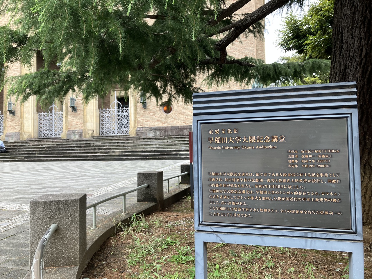新宿区の早稲田大学早稲田キャンパス内にある大隈記念講堂。大隈重信の像とともに、早稲田といえば思い浮かぶ存在です。ゴシック様式の建物は、まるでヨーロッパの教会のような佇まいです。訪れた時には、建物の前の階段の所に、様々な国籍の学生さん達が座っていて国際色豊かでした。
