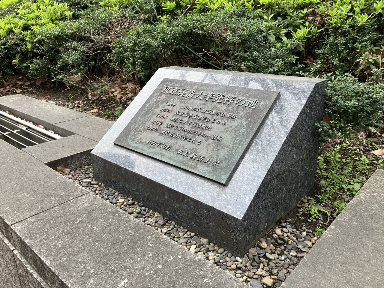 虎ノ門ヒルズからアメリカ大使館に向かって歩いている際に、左手に曲がる江戸見坂に立ち寄るとその坂下にこの案内板がありました。1900年からはじまる歴史が記されており、大倉商業学校が1949年に東京経済大学となったと書かれていました。