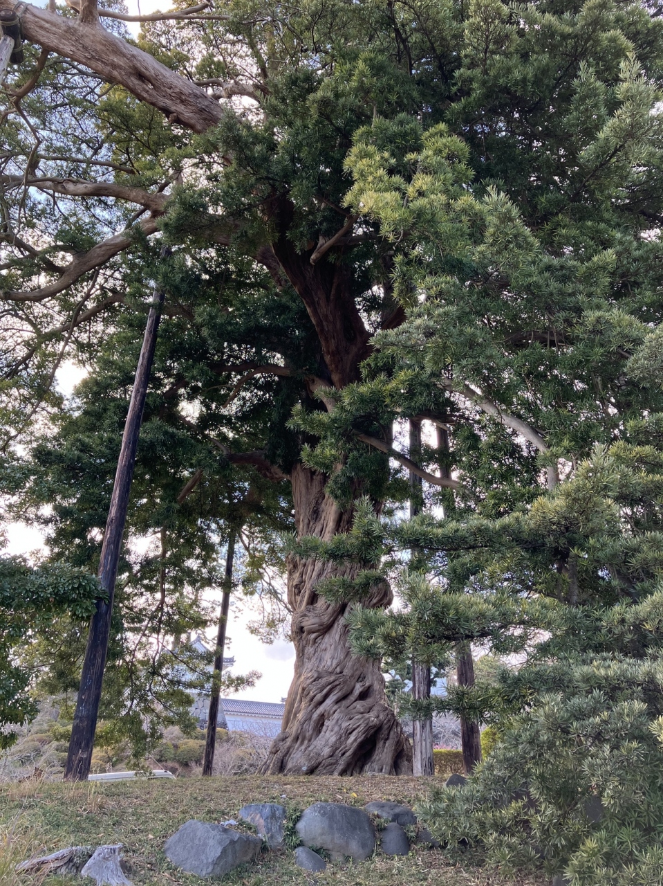 小田原城址公園内には梅の木をはじめ、多くの木々があります。中でもこのイヌマキは記憶に残るような木でした。天守閣に向かうルートの途中、NINJA館の近くに立っています。とても印象的な姿である一方、木の肌がとても美しいです。