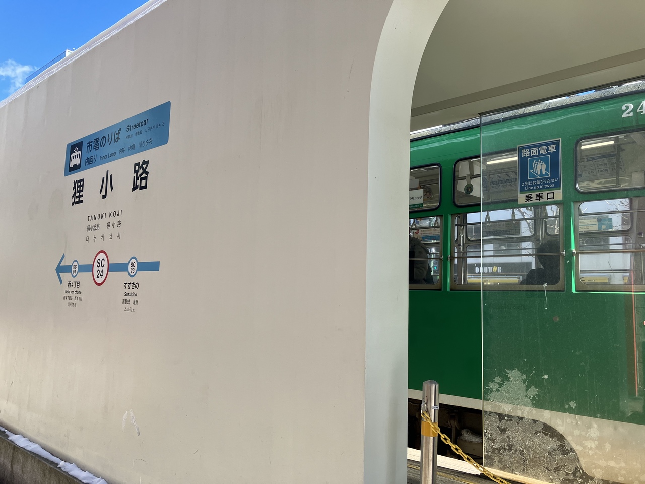札幌市内を走る路面電車で、大通西4丁目からもいわ山ロープウェイ入口、中央図書館、すすきのを環状に繋いでいます。札幌市内は道路が碁盤目状に配置されているので歩いて回るのにも快適ですが、市電も趣きがあって良いです。乗車料金は200円でした。
