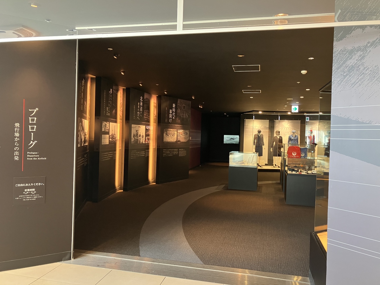 新千歳空港の3階にあるミュージアムで、フードコートの近くにあります。新千歳空港の歴史や歴代のフライトアテンダントさんの制服などが展示されていました。すぐ横には展望台に行ける通路があったのですが、冬季は展望台は閉鎖中でした。