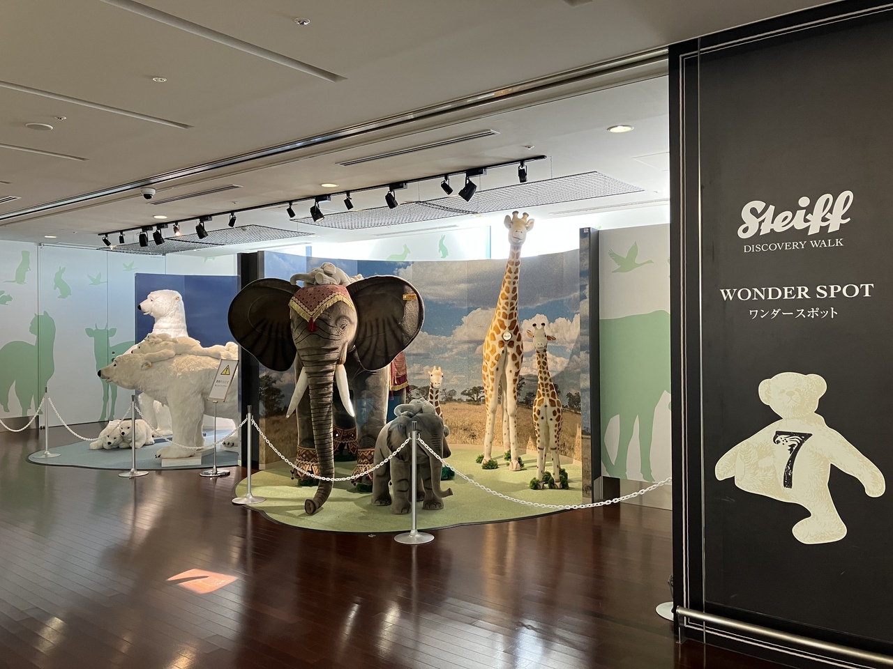 新千歳空港の国内線ロビーと国際線ロビーを繋ぐ動く歩道の両サイドに、シュタイフのぬいぐるみがズラリと展示されていました。牛や熊などがあったので、北海道にちなんだ動物かと思いきや、世界中の動物だったみたい。本物の動物かと思うほど精巧な作りでした。