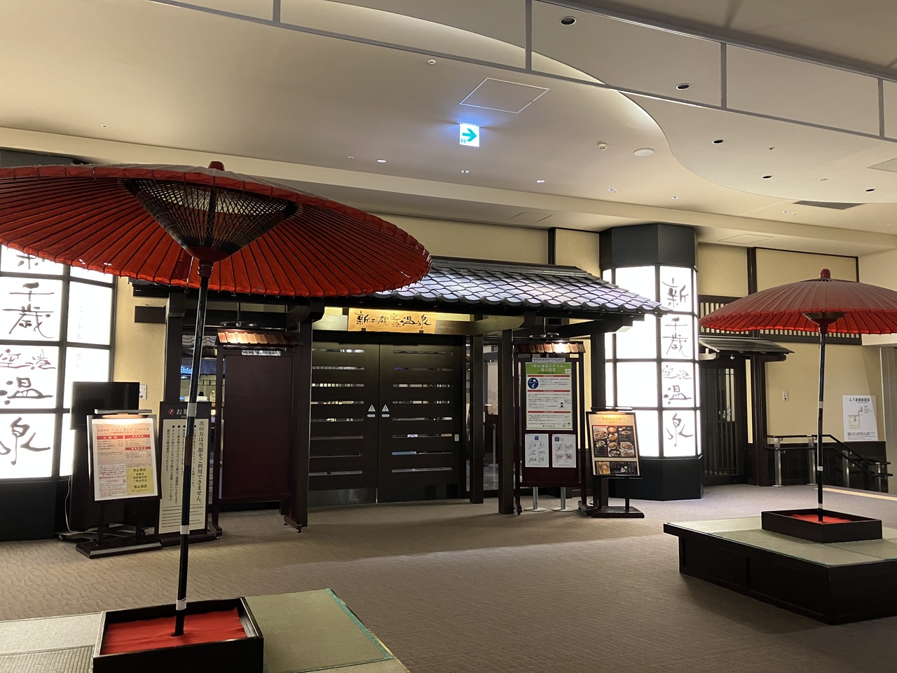 北海道の新千歳空港内4階もオアシスパークにある温泉施設です。同じ階には映画館もあって、空港内とは思えないです。入館料は1800円で、手ぶらでも温泉を楽しめるとのことでした。平日だったためか、4階のエリアには人があまりいませんでした。