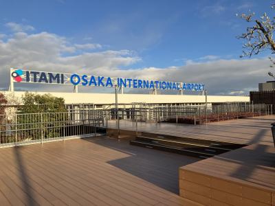 伊丹空港のターミナル4階にある展望デッキです。帰りのフライトまで時間があり、お天気が良かったので訪れてみました。ウッドデッキになっていて開放的な空間です。飛行機が好きな子どもたちが興奮していました。離着陸便が多いので、カメラで撮影をする人たちもいました。