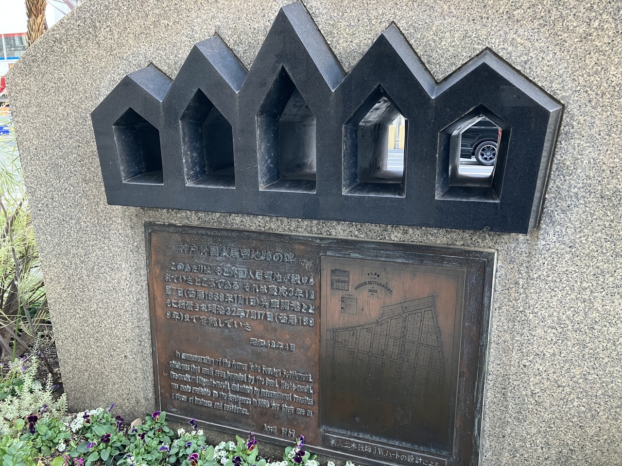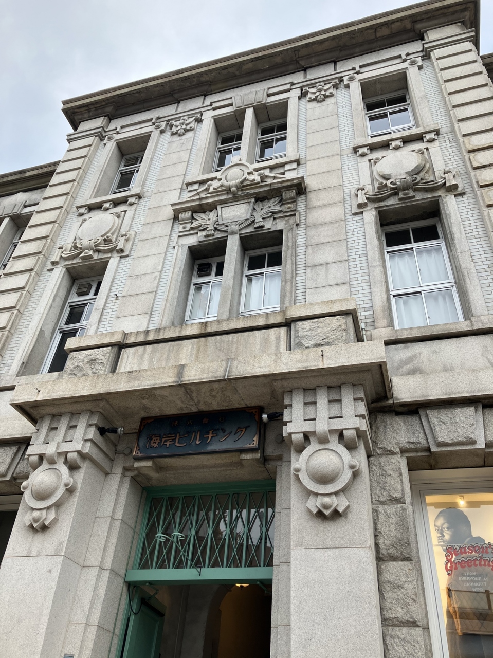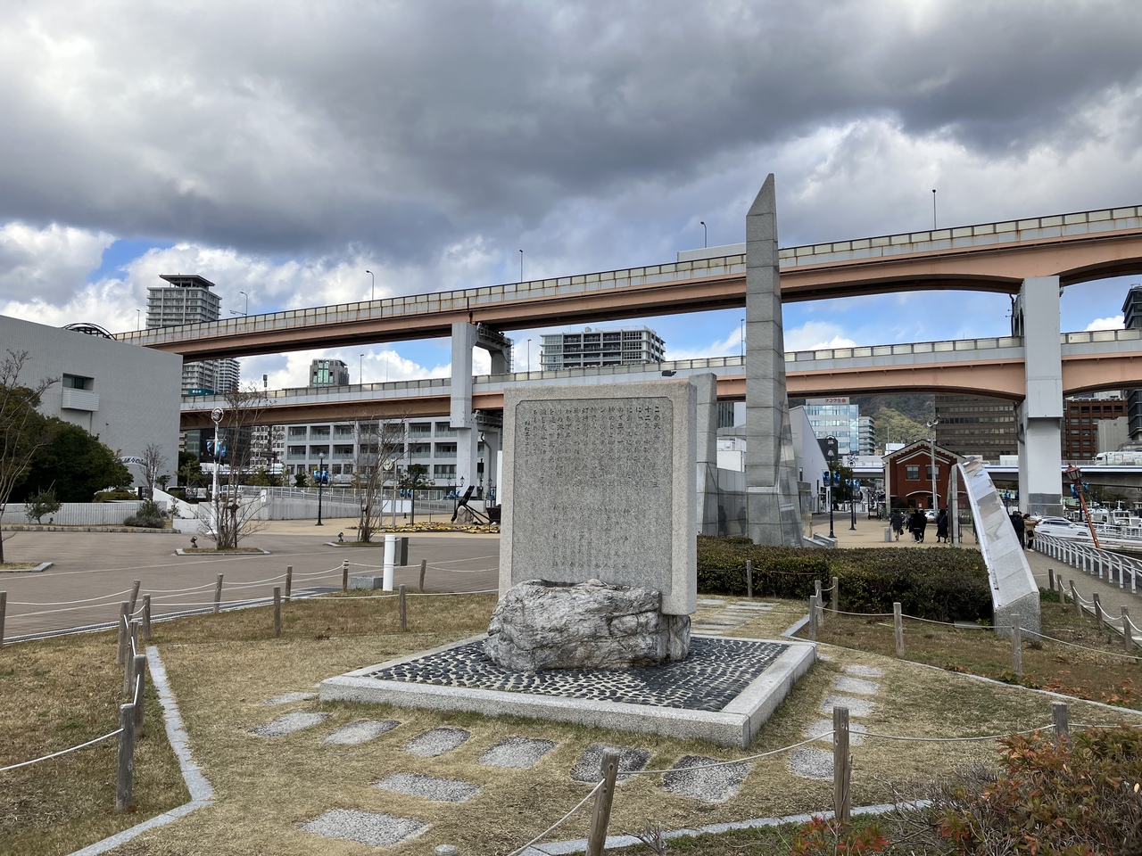 神戸大丸から広がる外国人居留地を散策中に、この石碑を見つけました。家の形をしたデザインがモダンでかわいいです。ベイエリアに向かって歩いていくと、商船三井ビルや神戸メリケンビルなど、レトロ建築がたくさんあって目の保養になりました。