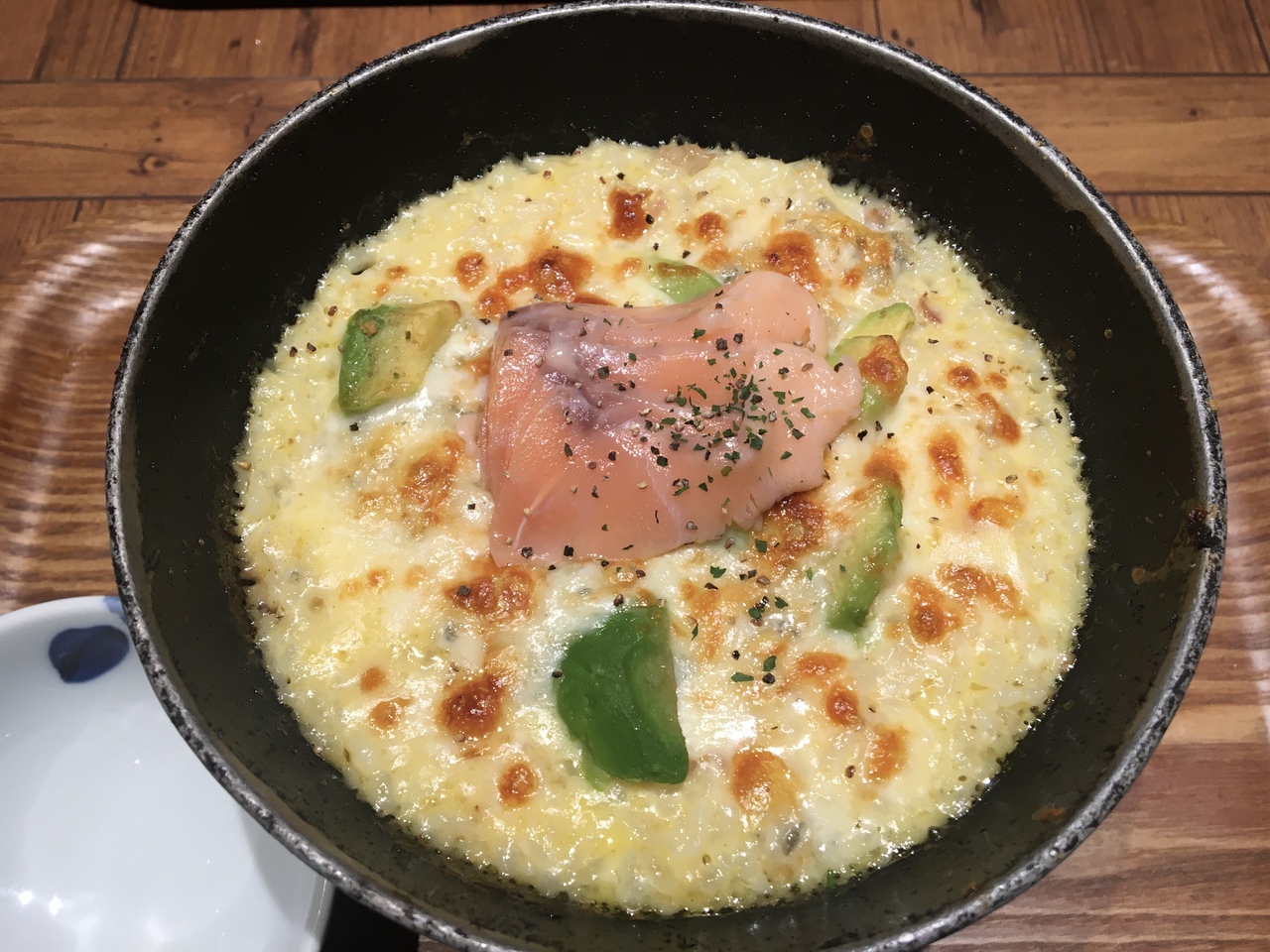 ラクーアのレストラン街にあるドリアのお店です。祝日のランチタイムに来店しました。お昼時だったことと、ちょうど大雨が降ってきたので雨宿りしようとする人たちでラクーア内のレストランはどこも大混雑でした。20分ほど並んで来店。並びながらメニューを見て注文を決めるシステムでしたが、種類が多くて悩みました。サーモンとアボカドのゴルゴンゾーラクリームドリアをチョイスしました。サラダやドリンクセットなども選べます。ドリアは熱々でチーズもたっぷりでした。