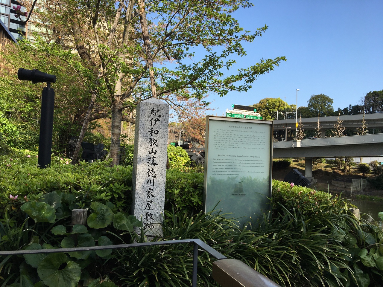 赤坂見附駅から陸橋の下を通り、弁慶橋を渡って東京ガーデンテラス紀尾井町に向かう途中で、入口のカラフルな花のアートの近くに「紀伊徳川家和歌山藩屋敷跡」という石碑を見つけました。ちょうどNHKの「ぶらタモリ」で東京の大名屋敷を特集した回で、紀尾井町をタモリさん達が訪れていたのを見たばかりだったので感慨深く史跡を拝見しました。
