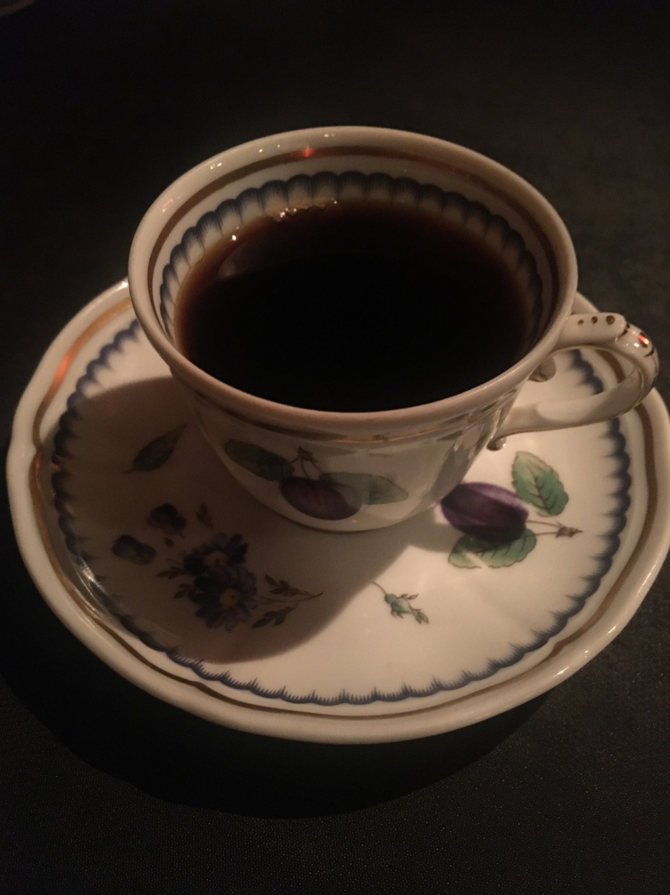 以前何度か週末にチャレンジしたのですが、いつもタイミングが悪くて閉まっていました。今回は平日にチャレンジ。15時前に来店したところ、シャッターが開いていて地下にあるお店に入ることができました。バーみたいな暗い照明で落ち着く空間です。7種類の豆を使っているというブレンドコーヒーをオーダー。上品なカップに入ったコーヒーはしっかりした味でした。