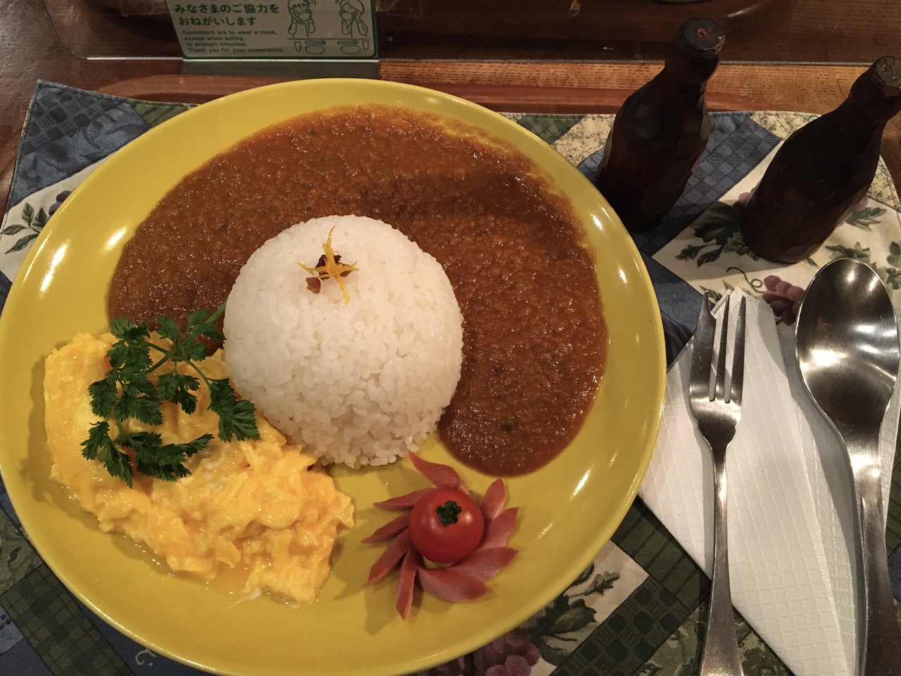吉祥寺北口前のダイヤ街の中にある人気の喫茶店。存在は知りつつも、入ったことはなく、今回初めて行ってみました。平日の11時に来店。まだお客さんはそれほど入っておらず、すぐに座れましたが、ランチ時間が近づいてきたらあっという間に満席になっていました。店内が本当に素敵です。地下へ階段を降りていくと、洞窟の中にジブリみたいな空間が広がっていました。ランチはオムカレーのセットを注文。カレーは甘めでした。