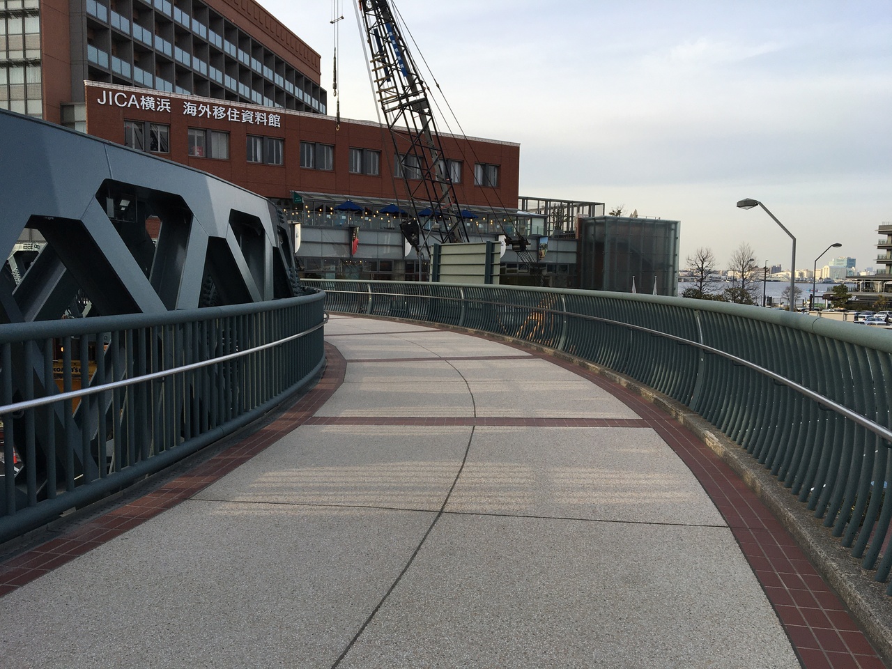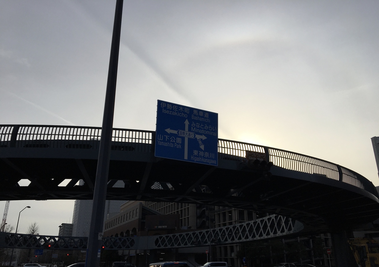 横浜エリアをお散歩中、赤レンガ倉庫からマリン&ウォークに行った帰りに馬車道に向かう途中で利用しました。エスカレーターも付いていて便利です。大通りをグルっと回るようにそびえ立つ円形の歩道橋で、立派な姿が絵になります。ワールドポーターズにも直結しています。