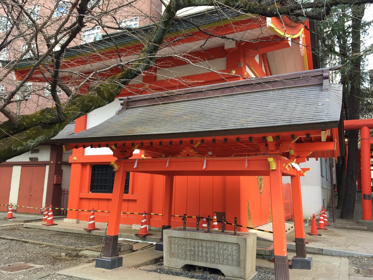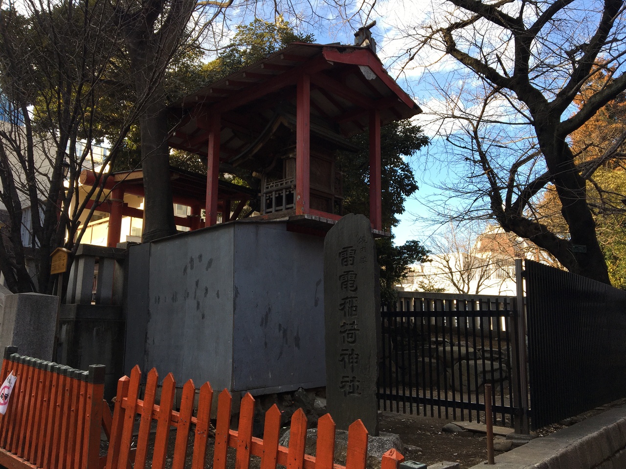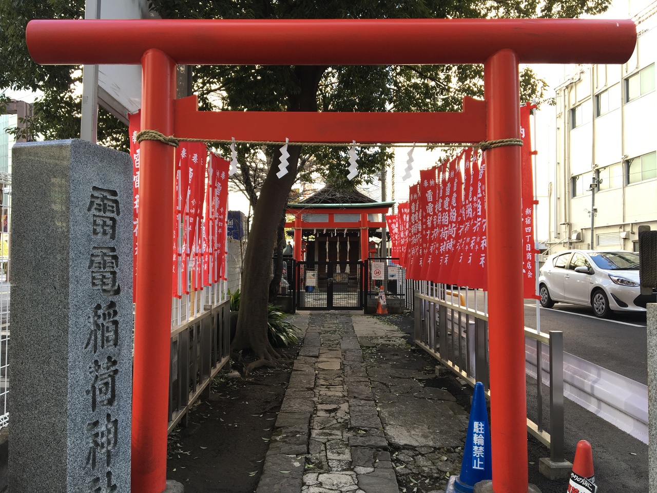 新宿の花園神社を訪れた際に、雷電神社の石碑を見つけました。花園神社に参拝する前に、新宿御苑を訪れていたのですが、新宿御苑のすぐ近くにも、雷電神社がありました。新宿御苑の近くの雷電神社は、鳥居が並んでいて本殿もあったのですが、こちらの花園神社内の雷電神社は本殿は見当たりませんでした。すぐ近くに白梅が咲いていて綺麗です。