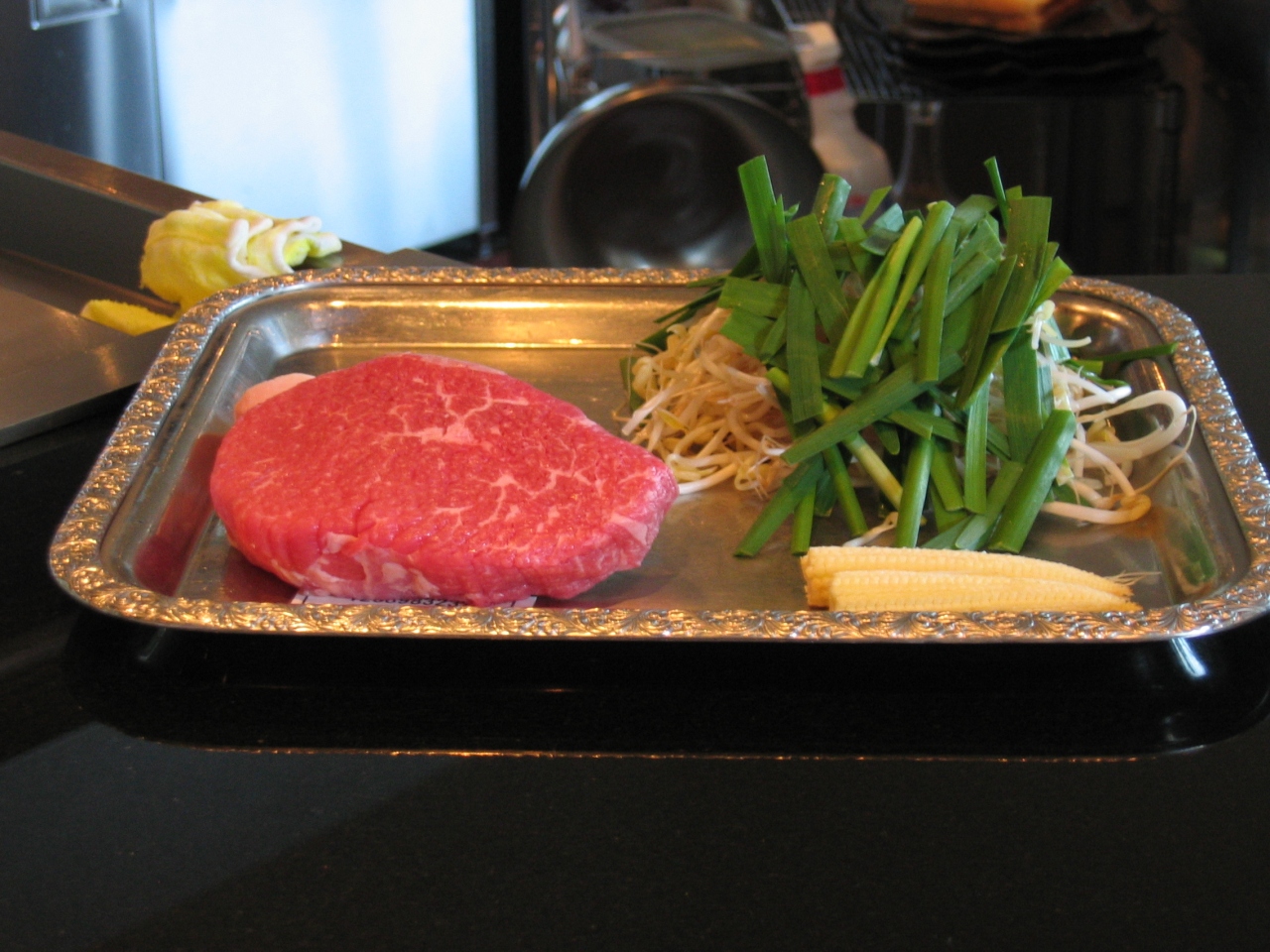 鉄板料理のお店で、目の前でシェフが肉などを焼いていただけます。- 旅行時期