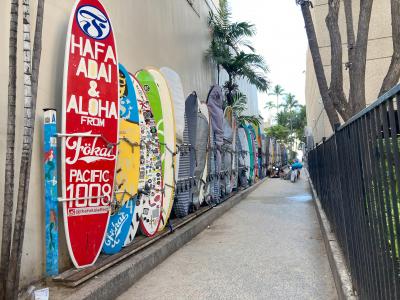 デューク像まで行って、戻ります。どうしても行きたかった、サーフジャック...