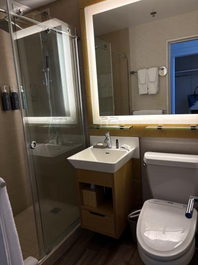 万博へ行くために宿泊しました。万博会場は御堂筋線が便利なので入り口に近いホテルで安かったのがここ。一休の割引が大きく1人8,500円ほどで泊まれましたが、定価だと1人13,000円でかなりお高目。最近の大阪は万博需要でどこもお高目だから仕方ないかも。施設はちょっと古さを感じますが、今回万博見学の為ホテル滞在時間が短いので寝るだけだったためまあまあでした。