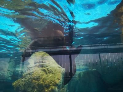 中国と日本のハイブリッドのオオサンショウウオ達が出迎えてくれます。面白...