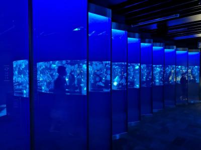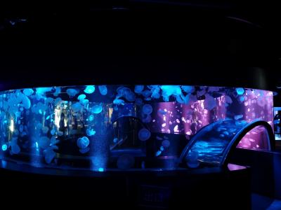 屏風をモチーフにしたクラゲ展示。鏡になってます。