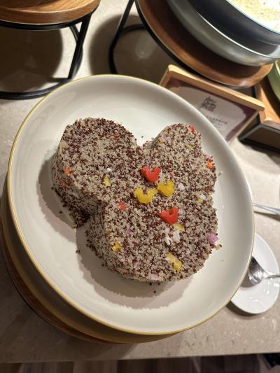 ホテルの朝食。サラダコーナーのクスクス?キヌア?よく分からないですが、...