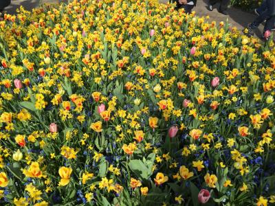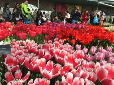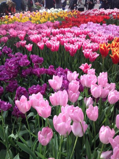 キューケンホフ旅行前の気持ちは桜の開花時期に気を揉むのと同じです。年によって残寒が長引いたり暖冬だったりして開花時期がずれるので、満開予想は難しいでしょう。しかし、ひとつの基準として毎年行われるパレードの時期に近い日にちに行かれるといいと思います。4月末です。5月も開園してはいますが、閉園間近に行けば花が刈り取られて頭がない無残な状態の花を目の当たりにするので、ご承知を。- 旅行時期