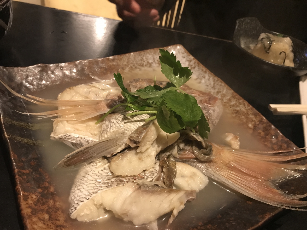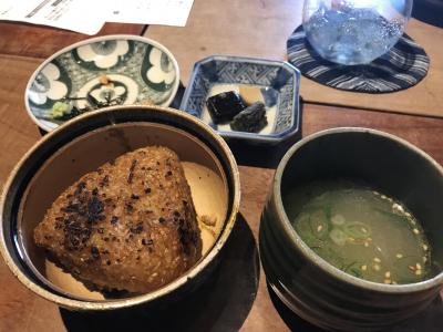 ポークソテーのランチを食べました。前菜の自家製野菜のソテーはどれも美味しかったです。ポークには外国産の大きな岩塩の板がついてきて、それにつけて食べました。しめの焼きおにぎりと鳥スープの組み合わせは絶妙です。難点は、琵琶湖の魚がめちゃ臭かった。