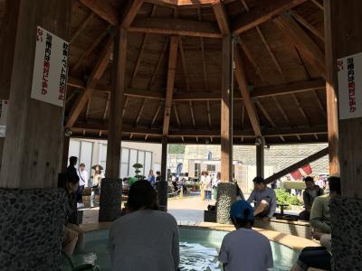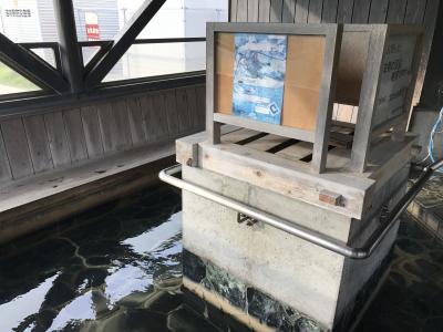 足湯のすぐ奥が遊覧船乗り場になっていて、船の出発時間になるまでこちらの足湯に浸かってました。広々した足湯で、かなりの人数が浸かることができてました。私が座った足湯の席からは海が眺められたので、意外とボーっとしながら長時間浸かっていられました。