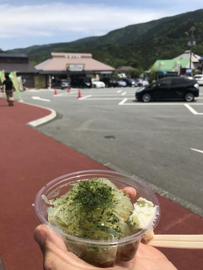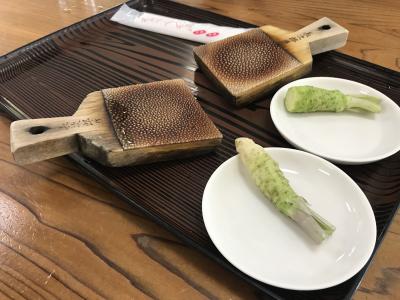 観光センターの外にあるわさびところてんを食べました。ほんのりワサビの香りがする心太で、さっぱりしていて美味しいです。あとは猪饅を食べました。他に鹿饅というのもありました。猪饅は初めてです。味噌仕立てで美味しかったので、おススメです。