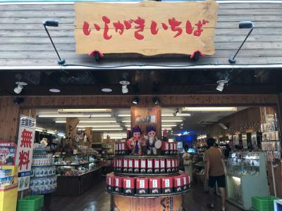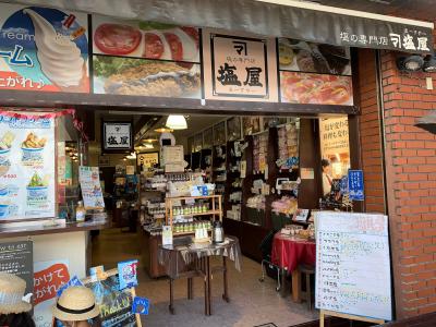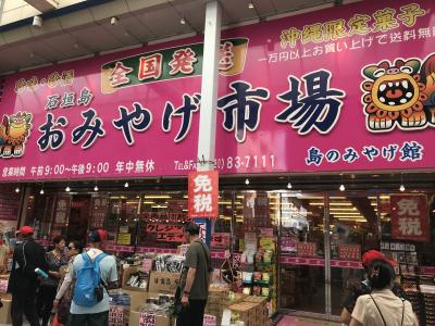 ファッションピンクの入口が特徴的なお土産屋さん。おかし系のお土産が多いです。