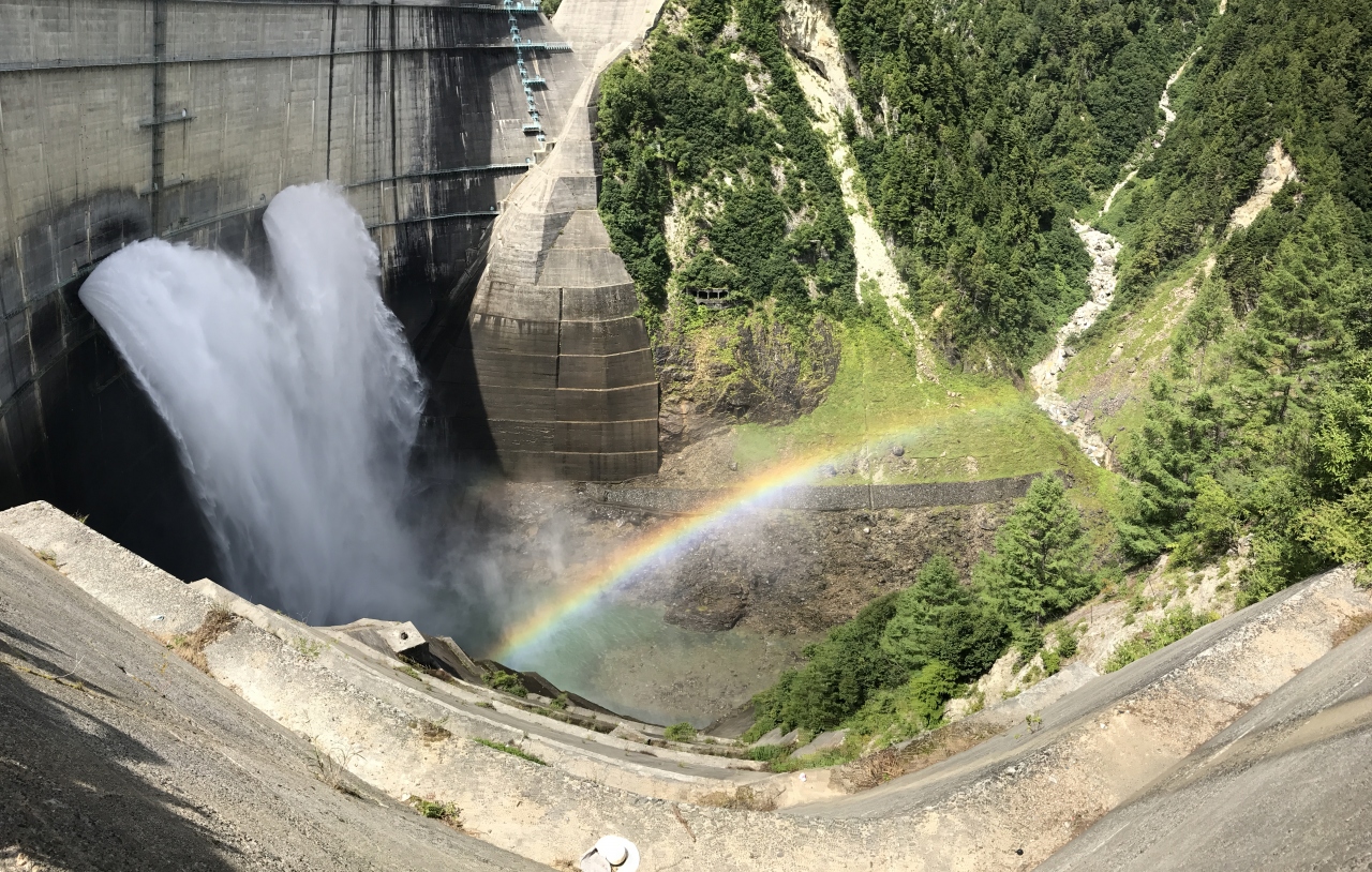 黒部ダムといえば、やっぱり放水。迫力がすごいです。訪問した日はとても天気が良く、二重になっている虹を見ることができました。放流と虹が一緒に見える展望台はすごい人ごみでした。平日といえど、やっぱり夏休み期間は混むようです。
