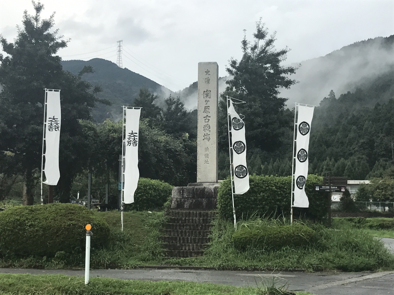 目的地に向かう途中、古戦場跡の看板を見つけたので立ち寄りました。道は整備されているので、古戦場石碑には車ですぐに行けます。石碑があって、旗があって、周りにはなにもありません。周囲は山と田んぼで、開発がそこまで進んでいる感じではないので、当時の雰囲気をほんの少しでも感じたいなら、訪問する価値もあるかもしれません。