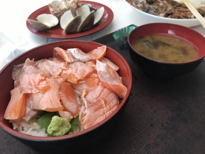 飲食店アプリで評判が良かったので、こちらでお昼にしました。全般的に値段は高め。観光価格かと思います。お刺身が食べられないので、炙りサーモン丼とアラ煮とハマグリの酒蒸しを注文。ハマグリとアラ煮は美味しかったのですが、サーモン丼はあんまり。ここは地物を食べるべきですね。衛生面がちょっと気になります。