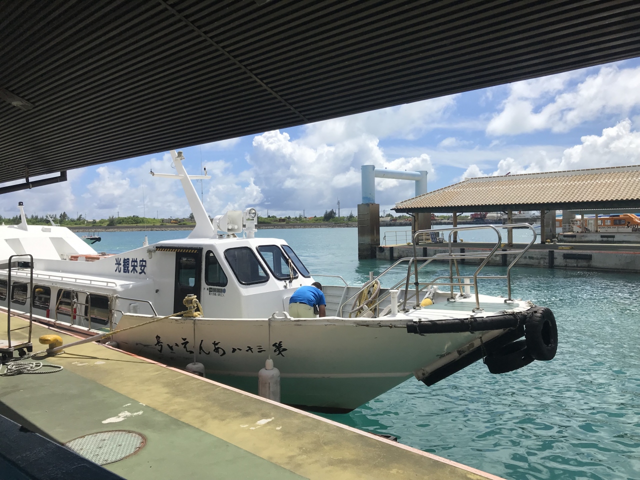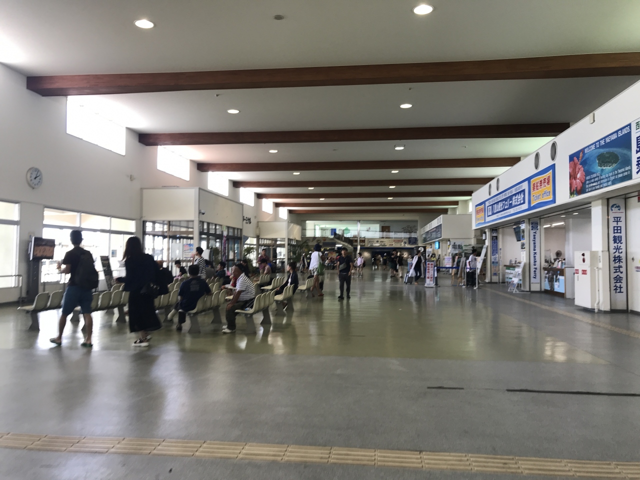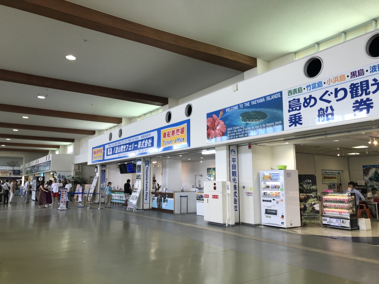 竹富島へ行くのに離島ターミナルを利用しました。いろんな観光業者が並んでいて目移りします。ターミナルには売店があったので、船旅のお供にサーターアンダーギ―と塩せんべいを購入しました。