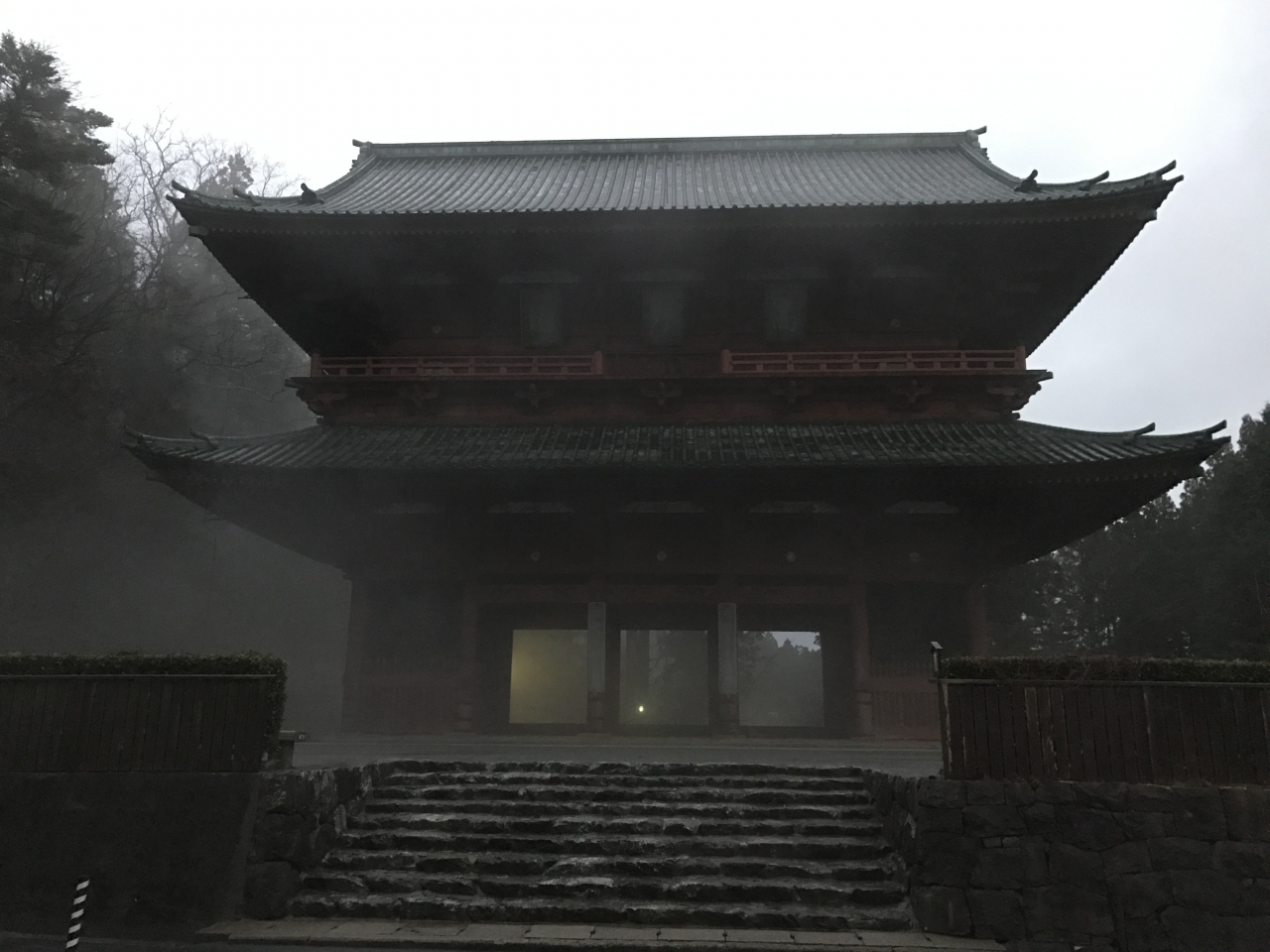 松平家の墓の近くの旅館に泊まっていて、朝早く出発しましたが、入るところを間違えて山の中をさまようことになりました。1時間ほどさまよって、ようやく松平家の墓に到着。曇り空で、霧も出ていて、ちょっと怖かったです。