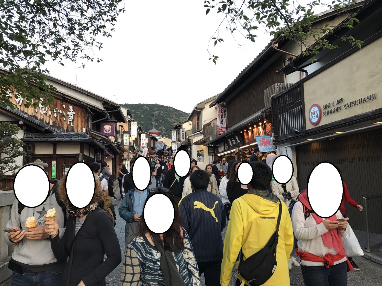 清水寺への参道です。祇園とはまた違う古い街並みがズラッと並んで良い感じの雰囲気です。お土産屋さんや飲食店などもあって、祇園よりも入りやすい雰囲気なのが良いです。湯豆腐や八つ橋の看板が目立ちました。食べ歩きOKな坂道です。