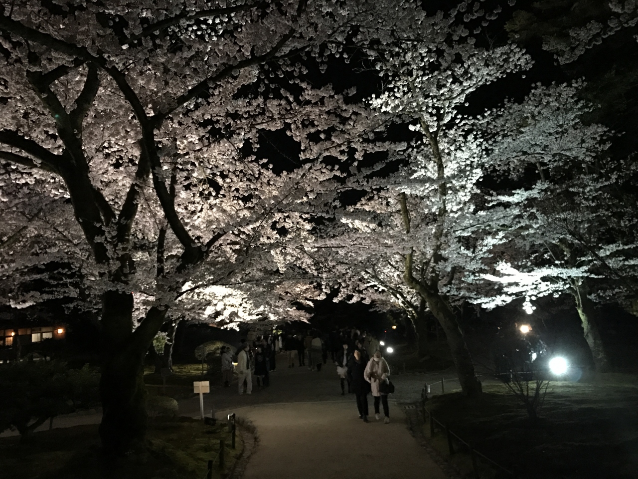 金沢城と兼六園がセットで夜間開館されていたので、両方訪問しました。どちらもライトアップが少なく足元中尉の状態でsいたが、どちらかというと、金沢城の方が見ごたえがありました。お城とお堀と桜とライトアップ、無料で開放されているのが良いです。