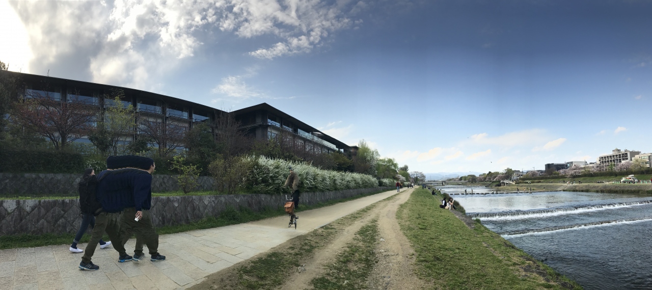 京都御所から鴨川にやってきました。鴨川沿いに桜と雪柳が整然と並んでいて、綺麗でした。特に雪柳が立派で、見ごたえがあります。散歩している人や花見をしている人など、訪問した日の鴨川もにぎわっていました。土手の部分に座りやすいのが良いです。