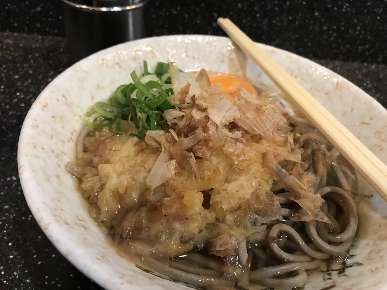 ざるそばが食べたくて立ち寄ったら、温かいお蕎麦しかなかったです。回転率考えたら、冷たいソバは出せないんですね。かけそばを頼みましたが、富士そばの醤油みたいな出汁じゃないのでそれなりに美味しいです。このあたりの特徴なのか、そばが太い。さらしなそばみたいな細いそばをつるっとすすりたかったな。