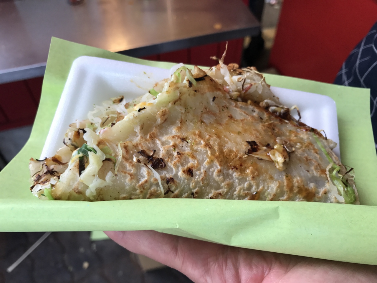 歩っていたら、キャベツ焼きに遭遇したので、思わず買って食べました。やや小麦粉の生っぽい感じもしますが、1枚140円という値段は驚愕。どんどん物価が高くなっているのに、インフレ知らずのお店ですね。大阪の下町の雰囲気を味わいたい方におすすめです。ここ以外にも、難波など、いろいろ店舗があるらしいです。
