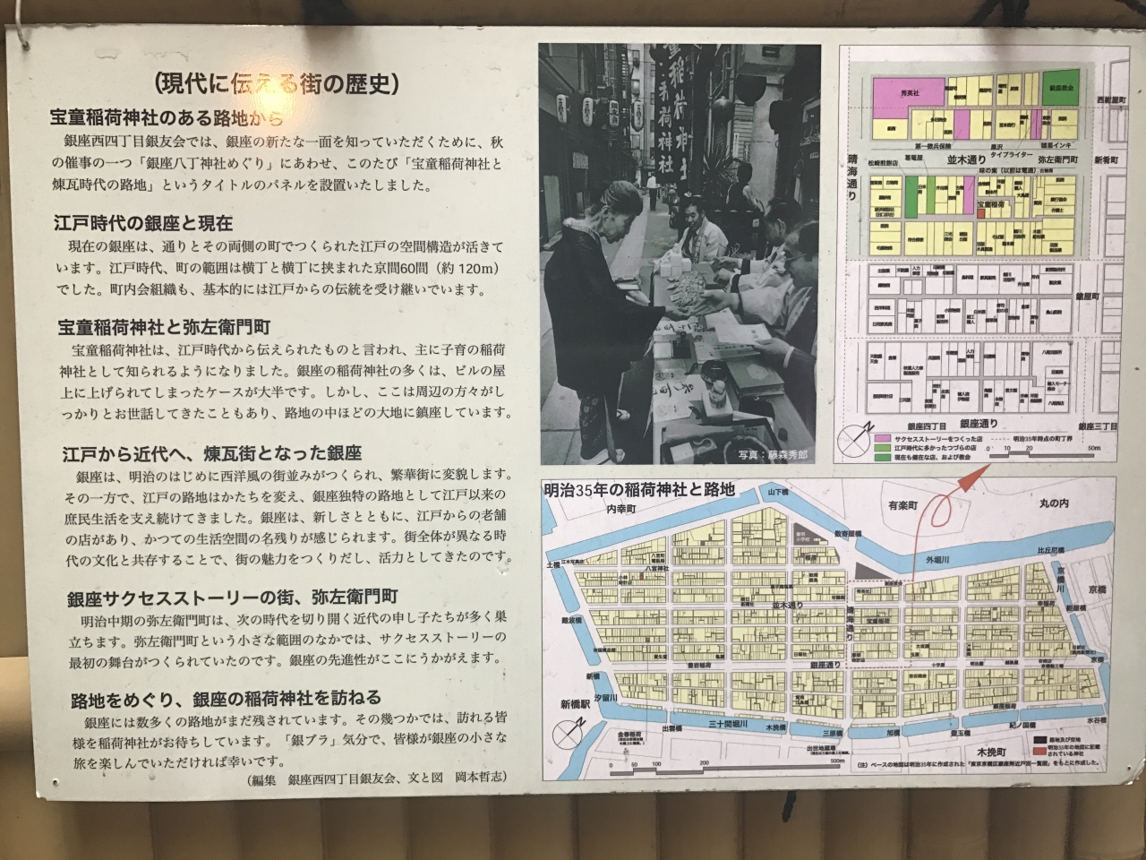 どういうルートでたどり着いたのか忘れましたが、銀座を歩っていた時に、ふと路地をまがったところに神社を発見しました。高層ビルに囲まれてポツンとある神社に哀愁が漂います。並木通りや晴海通りが華やかな表の道なら、この神社がある路地裏などは、昔から銀座にいる人達の生活の場であったんでしょうね。