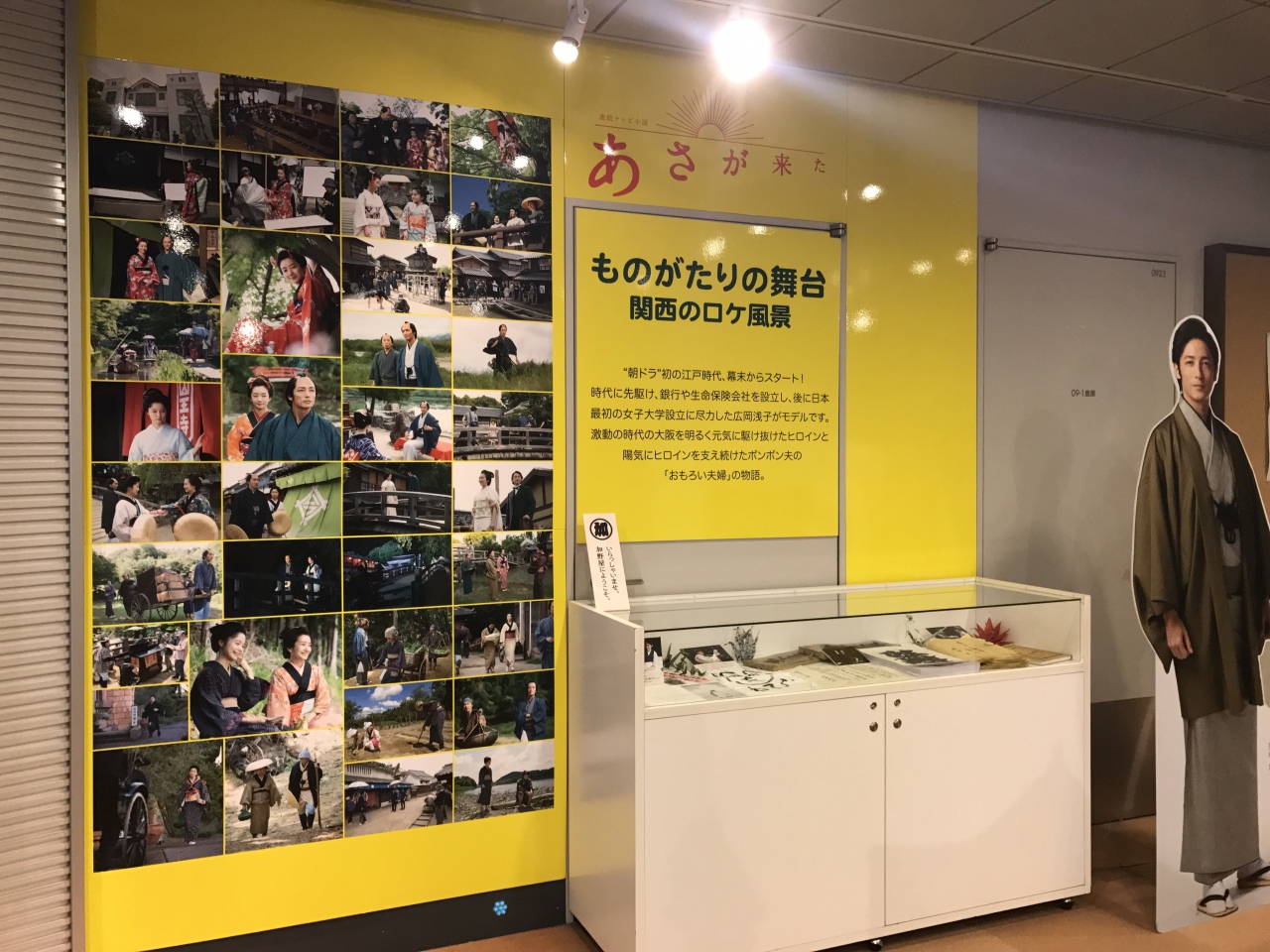 「あさが来た」NHKの連ドラで唯一全話見たドラマだったので、展示を見に行きました。9階部分にあさが来たの展示コーナーがあって、写真を撮ることができました。ほかにもいろいろな展示がありましたが、撮影用スタジオが9階から見下ろせるようになっていました。訪問した日は撮影がない日だったので、空いていました。調べずに行きましたが、撮影ない日で良かった。