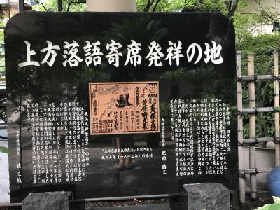 上方落語寄席の発祥の地の石碑が立派だったので立ち止まって読んでしまいました。落語はまったく興味がないんですが、大阪で初めて寄席が作られてのがこの場所で、1789年~ごろの話だそうで、年代が意外と新しくて驚いた。石碑の文は句読点ぬきで書いてあるから読みにくい。伝統かもしれないけど、句読点なしって好きじゃない。