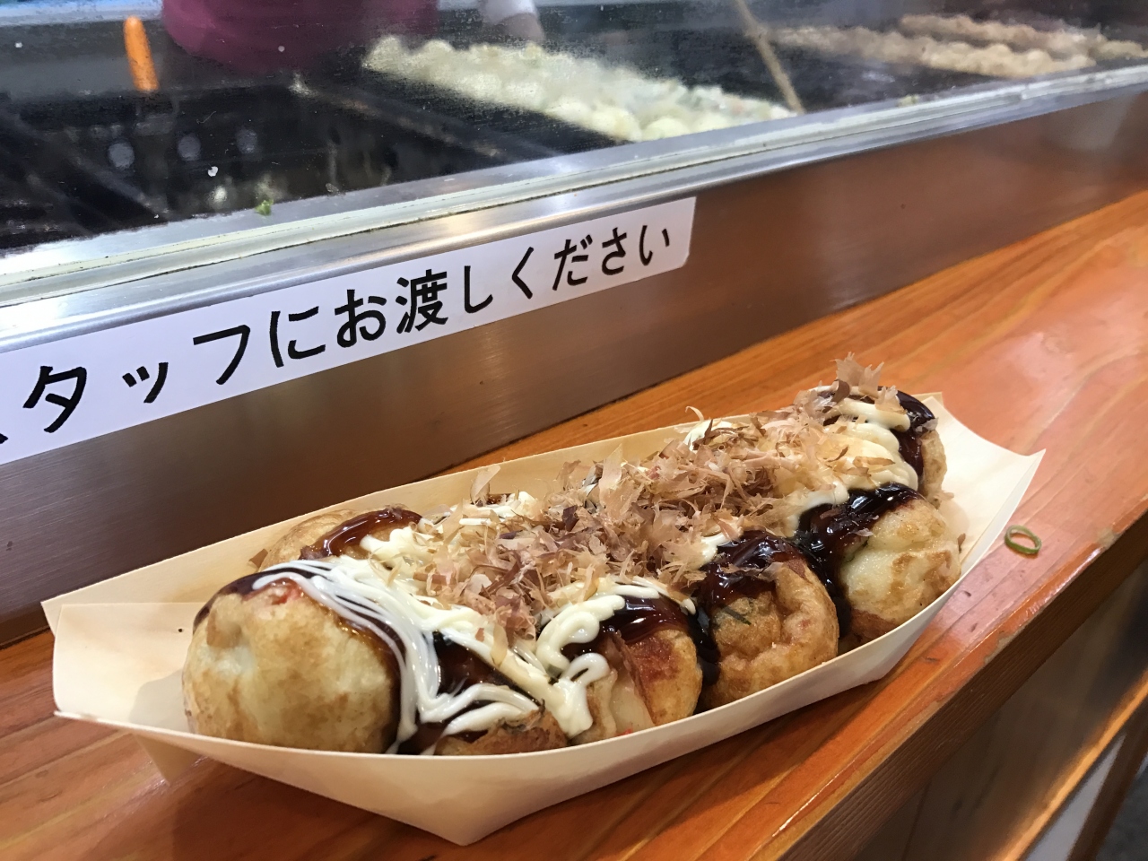 晩御飯を食べて3件目に立ち寄りました。飲茶や天心の専門店で、安いのがうれしいです。味は普通に美味しいのですが、ちょっとぬるい気がします。京都の新京極店にも行ったことありますが、やっぱりぬるい気がするのです。飲茶って写真に湯気が写るくらいアツアツの方が美味しいと思います。こちらはそれがないです。たこ焼き屋さんみたいに、ちょっと食べてさっと帰れるのが良いです。