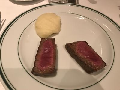 アメリカンなTボーンステーキ。見た目美味しそう出し、香りも食欲をそそります。でも3切れしか食べてない。なんか、脂がきつくて、すぐ胸焼けしてしまった。持ち帰りもできたけど、夫が残りを全部食べてくれました。アメリカ人はこれをペロッと食べてしまうんでしょうかね。サラダとスープですでに満腹だし。