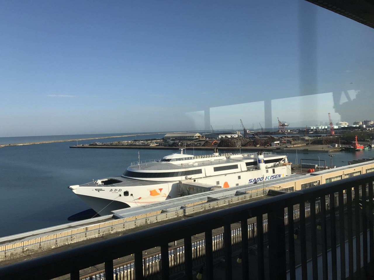 車ごと船に乗りました。移動中はもちろん、船内を自由に歩きまわることができます。船内は小奇麗で椅子は結構快適。売店もあって、名物の佐渡カレーと佐渡牛乳を買いました。外に出ることもでき、館内をウロウロしている間に、あっという間に佐渡についてしまいました。