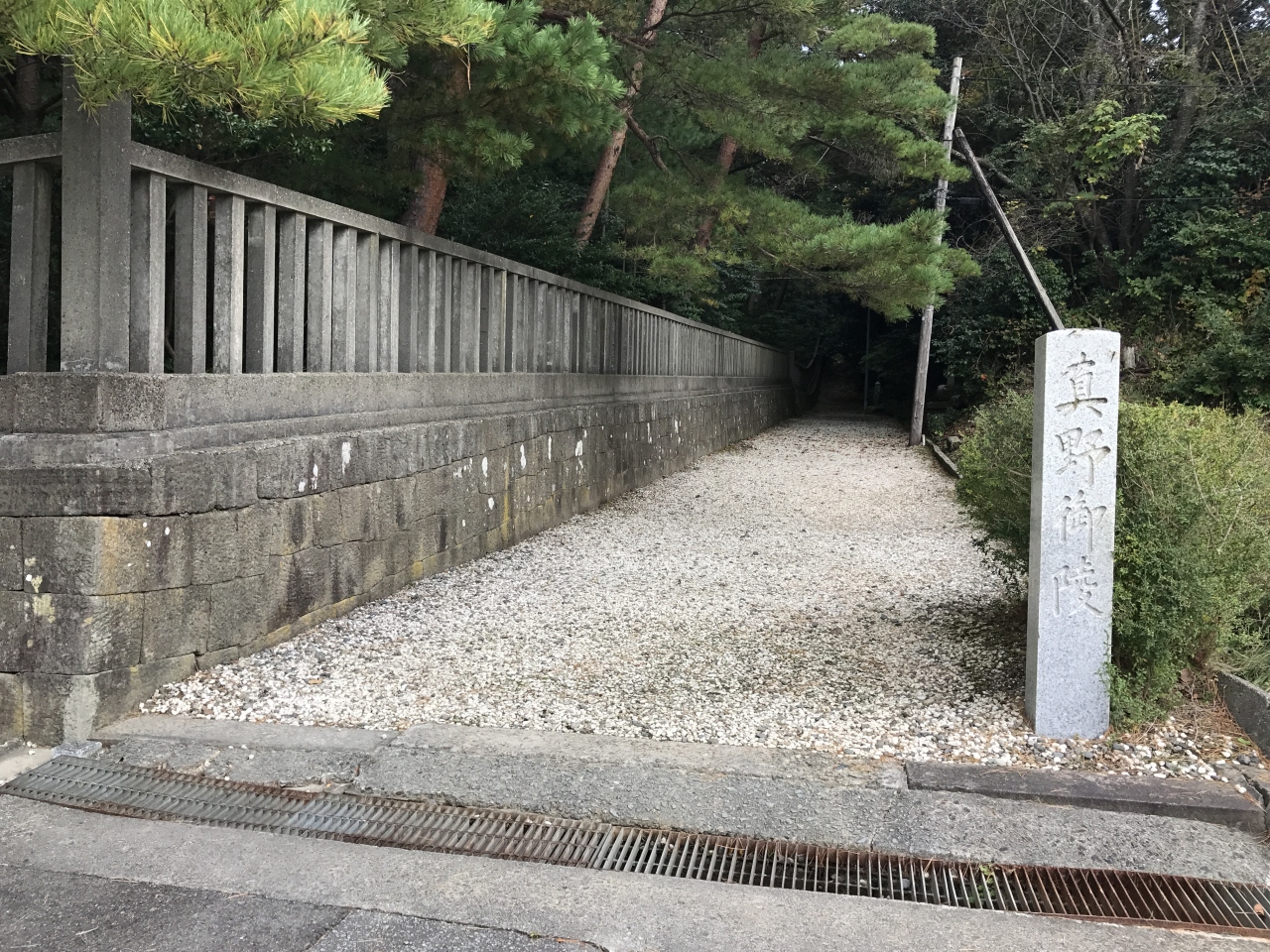 宮内庁管轄で良くある感じの御陵です。手前に解説版があって、大事な敷地部分は囲いを作って入れないようにしています。